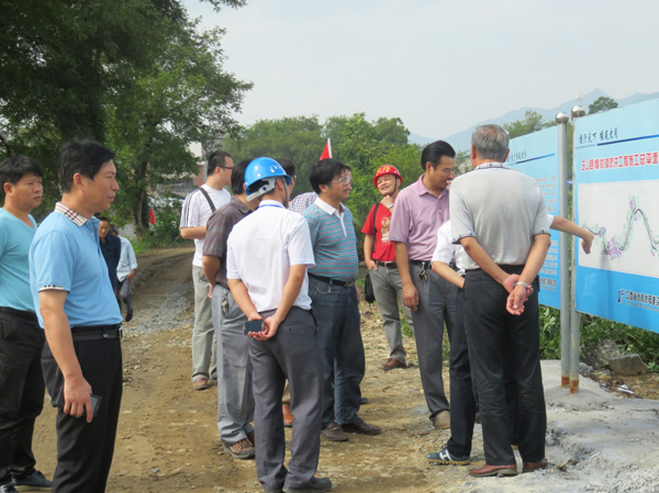 為進一步落實8月8日全省水利建設(shè)推進會精神,2014年9月21日上午,以水利廳副廳長廖瑞釗為組長的督查組來到我公司承建的上饒市玉山縣樟村鎮(zhèn)防洪工程現(xiàn)場檢查指導(dǎo)工作。督查組一行深入工地全線施工現(xiàn)場,每到一處都詳細詢問各參建單位情況,了解工程的投資規(guī)模、設(shè)計方案及進度、質(zhì)量控制情況。督察組對樟村鎮(zhèn)防洪工程施工質(zhì)量尤其是工程外觀表示非常滿意。在看了工地整齊規(guī)范的五圖一牌及公司形象宣傳欄后,廖瑞釗副廳長對我公司的標(biāo)準(zhǔn)化施工管理給予了高度評價,還不時拍照記錄,并要求玉山縣水利局在全縣其他水利建設(shè)工地參照學(xué)習(xí)并加以推廣。在檢查完工地現(xiàn)場后,督察組在樟村鎮(zhèn)政府就防洪工程設(shè)計、施工、及鄉(xiāng)鎮(zhèn)規(guī)劃召開了座談會。